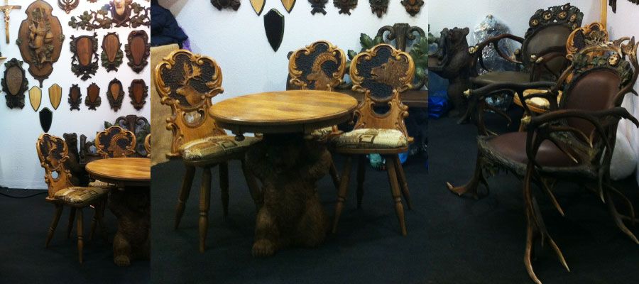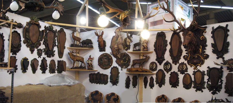 Auch so manches Trophäenschild aus altern Familienbesitz wurde von uns nachgefertigt oder restauriert. In handwerklicher Tradition fertigen wir für Sie exklusive Hirschhornerzeugnisse : Deckenleuchte, handgeschnitzte Lusterfigur, (Handbemalt); Kronleuchter; Wandleuchter (Damschaufel, Elchschaufel); Gheweihsesel; Geweihbank; Geweihtisch; Hocker Beistelltisch; Garderobe; Krawatte; Jagd Gürtel Geschnitzte Jagdmesser.